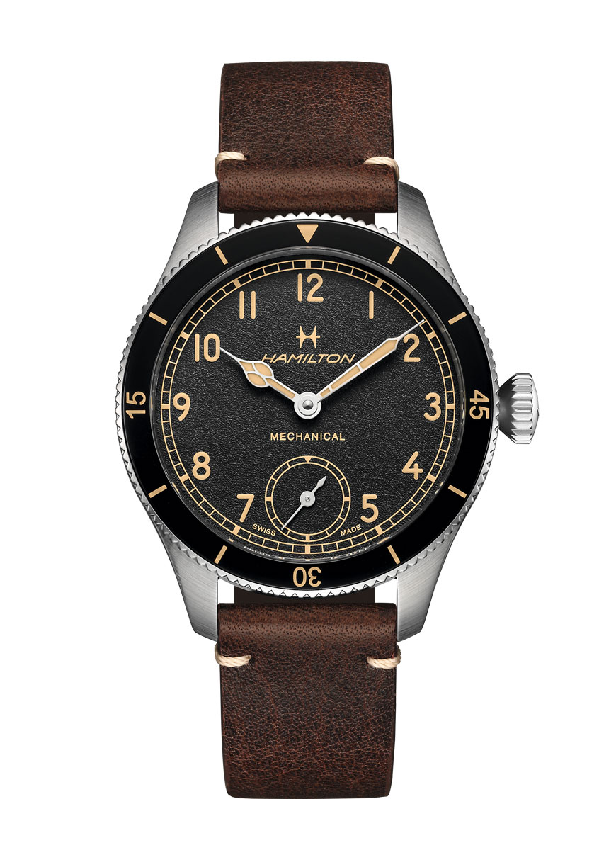 Inspirado en el Model 23, un reloj de bolsillo vanguardista utilizado por los soldados estadounidenses durante la Segunda Guerra Mundial, el diseño distintivo de Khaki Pilot Pioneer rinde homenaje al legado militar y de aviación de Hamilton. Este reloj de piloto con un estilo deportivo a la vez que refinado, posee un inconfundible diseño técnico que se puede apreciar a través de su mecanismo de cuerda manual, su bisel giratorio bidireccional y la prominente corona. Este reloj de 43 mm está listo para volar al equiparse con una elegante caja de acero inoxidable o una exclusiva caja de bronce.